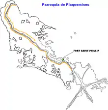Fort St. Philip is a historic masonry fort located on the eastern bank of the Mississippi River, about 40 miles (64 km) upriver from its mouth in Plaquemines Parish, Louisiana, just opposite Fort Jackson on the other side of the river. It formerly served as military protection of New Orleans, some 80 miles (130 km) up the river, and of the lower Mississippi River.