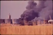 As of 2015, there is no stringent enforcement of overtime or hazard pay.[35][36] Workers have also complained about the lax attitude of refineries toward the improvement of safety measures and equipment resulting in the 2015 United Steel Workers Oil Refinery strike.[37][38] An agreement was eventually reached to determine more standardized safety regulations and to improve pay and health care costs.[39] Such safety regulations are also important for fenceline communities which are disproportionately impacted by the pollution generated by refining facilities and in which people of color tend to be the majority.[40] There has also been a historic precedence of siting refineries in existing communities of color.[41] A bill introduced in 2006 was passed by the House of Representatives with the intent to expedite the siting process of states by offering federal assistance in the form of "expertise in fields relevant to consideration of federal refinery authorizations".[42][43]