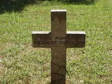 He was one of the most notable chieftains of Souli in the early 19th century and leader of a rebel force under Markos Botsaris during the Revolution.[2] He was present in Missolonghi on 4 November 1821 during the formation of the Senate of Western Continental Greece, as a "commissioner of Captains from Souli".[3] He acted as deputy of the Souliotes in the First National Assembly at Epidaurus, by Markos Botsaris' suggestion, and he then became part of the Legislature.[4] He was killed outside of Missolonghi, on 28 February 1826, while attacking a Turkish rampant.[1] His dead body was taken from the Ottomans by men of his group, who transferred it to Missolonghi and buried it, the next day, in an individual grave with general honours.[5][6] The mention on the cross on his grave that he Fell in the Exodus is not accurate, as he had already been killed before the Exodus of Missolonghi.[1]