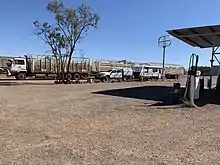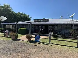 The Burke and Wills Roadhouse at the Burke and Wills Junction where the "four ways" meet (19°13′38″S 140°20′51″E / 19.2272°S 140.3476°E / -19.2272; 140.3476 (29 October 2020)) is a popular stopping place on these long road routes. It has basic accommodation, meals, fuel, groceries and souvenirs.[8][9]