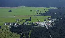 Bruce Bay is 46 km (29 mi) to the south-west of the village, and Franz Josef / Waiau is 23 km (14 mi) north-east. State Highway 6 runs through the village.[3][4] The village is 6 km (3.7 mi) from the eponymous Fox Glacier, and a similar distance from Lake Matheson.[5]