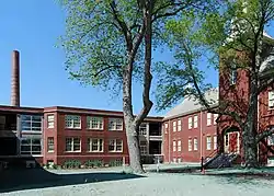 Foxborough State Hospital, historically known as the Massachusetts Hospital for Dipsomaniacs and Inebriates, is a historic medical treatment facility at the junction of Chestnut and Main Streets in Foxborough, Massachusetts. The creation of an alcohol abuse treatment facility was authorized by state legislation in 1889, and the Foxborough campus was developed in the 1890s. The original campus consisted of a series of residential wards in an L shape, with an administration building at the center, and a variety of ancillary support buildings on the grounds. Problems with the facility, including its location (whose access to roads and railroads gave easy access to escaping inmates), prompted the state to move the substance abuse facility in 1914 to a new campus in Norfolk. The Foxborough campus was then adapted for use as a standard mental hospital.[2] The surviving 19th-century elements of the campus were listed on the National Register of Historic Places in 1994.[1]