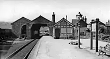 In 1879 an enlarged station was built, designed by the Lancaster architects Paley and Austin and built by the Barrow contractor William Ormandy. The island platform was widened to 29 feet (9 m), and a new canopy for passengers was provided.[3]