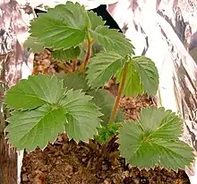 - 'Rebecka' (1998) — ('Fern' × F. vesca 4×) × F. × ananassa F861502