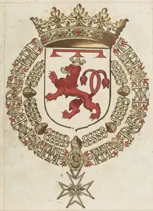 The following year Henri honoured Piney with an elevation as a chevalier de l'Ordre du Saint-Michel, the highest order of chivalry in France until it was superseded by his new Ordre du Saint-Esprit in 1578.[8] Despite this high honour, Piney was not particularly close with the king, and he complained to the secretary of state Villeroy that royal grace relied on the physical closeness and presence of the king, and that without it he was unsure how to proceed. Henri administered through a far more cloistered style of governance than his predecessors had.[9]