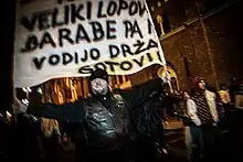 Due to corruption allegations, pretrial processes, and criminal charges made against him, the citizens of Maribor demanded his resignation in two separate protests in November and one in December under the slogan Gotof je! ('He's done!' in Styrian dialect).[8][9][10] He stepped down on 6 December 2012, with his term lasting until 31 December 2012.[11] At the same time, he applied for a seat on the National Council of Slovenia. On 12 December 2012, the office commission refused his candidacy.[12]