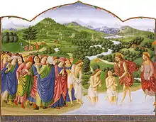 Francesco was often compared to the Pollaiuolo brothers in terms of his artistic style. Antonio del Pollaiuolo was renowned for his skill in depicting the human figure and was one of the first artists to practice anatomical dissection.[3] Pollaiuolo's style has been described as pure and sober, except for his female faces which are comparable to bright elegance of the madonnas created by Baldovinetti.[4] Francesco and Antonio del Pollaiuolo's landscapes were very similar which can be seen in the composition of three Marys at the Tomb (E 204, fol. 2v), or in the Communion of the Apostles (fol. 169r). Piero del Pollaiuolo, the other brother, also has direct links to inspiring Francesco. In Francesco's Disputationes he represents his connection to Piero through a design on rug. The pattern on the rug is exactly the same as one Piero used in one of his work, but instead of a rug he had the pattern featured on a throne. Francesco was also compared by the art historian Annaroza Garzelli to Domenico Veneziano in terms of his luminosity.[2]