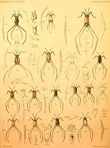 In 1883, Buchanan White redescribed the known species of the Hemiptera genus Halobates and he illustrated 11 species in colour, with numerous drawings in black and white of structural details. This was one of the parts of the Challenger Report.