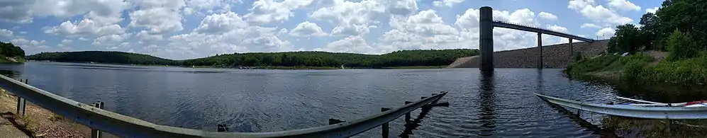 The Francis E. Walter Dam is an embankment dam located in Bear Creek Township, Luzerne County, Pennsylvania, U.S. Constructed in 1961 by the United States Army Corps of Engineers, it spans the Lehigh River at its confluence with the tributary Bear Creek, creating the Francis E. Walter Reservoir. Although the dam was originally constructed for flood management, its reservoir has since become a popular recreational area for fishing, kayaking, and boating. Its original name was Bear Creek Dam, but was renamed for local United States Representative Francis E. Walter in 1963.[1][2][3]