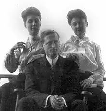 Photograph of Francis Hall with his sisters-in-law after his return from Japan in 1866
