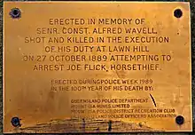 Memorial plaque in honour of Senior Constable Alfred Wavell