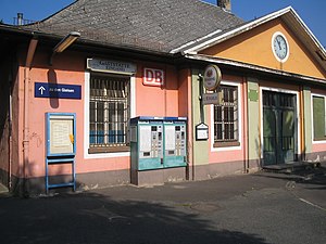 View of the station from the east from Omega bridge over the B 40, rail tracks and Kilianstädter Straße