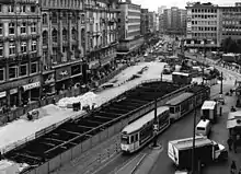 1966 near Hauptwache: Construction in progress under the street Roßmarkt up to Kaiserstraße.