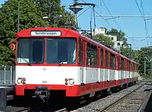 The U-Bahn opened in 1968,[4] and has been expanded several times. It consists of three inner-city tunnels and above-ground lines in the suburbs. About 59% of the track length is underground. The network operates in a variety of right of ways typical of a light rail system, with above-ground sections operating on street and core sections running underground in the inner city.[1][5]