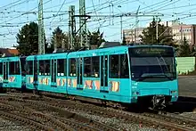 The U3 Class is based on the U2, but have a slightly longer length, a lightweight design made entirely of steel, and was intended for underground operation. Duewag built 27 vehicles, which are painted in the present blue livery that was applied to RMV (formerly FVV) and have been in use since 1980. They were deployed on line U4, until being replaced in April 2015 by U5 train cars and transferred to line U6. In June 2017 the last type U5 car was delivered, which matched the retirement of type U3 train from service. As of October 2019, most trains should be refurbished and transferred to Monterrey Metro in Mexico.