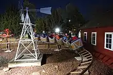 The park was reacquired by Six Flags in 2018, which brought the end of their former kids area to a new Timbertown for the 2019 season.[1] Frontier City announced that the Wild Kitty a similar style roller coaster, was to be removed in advance for the new attractions. Frankie's Mine Train was then built at the former location of Wild Kitty, the same model that is found at Six Flags Great Escape.