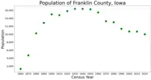 Franklin County is a county located in the U.S. state of Iowa. As of the 2020 census, the population was 10,019.[1] The county seat is Hampton.[2] The county was formed on January 15, 1851[3] and named after Benjamin Franklin.[4]