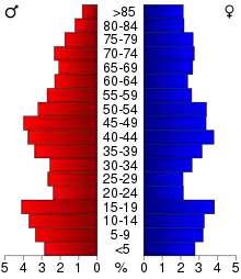 In the county, the population was spread out, with 24.20% under the age of 18, 7.30% from 18 to 24, 24.00% from 25 to 44, 23.90% from 45 to 64, and 20.50% who were 65 years of age or older. The median age was 41 years. For every 100 females there were 96.40 males. For every 100 females age 18 and over, there were 93.90 males.