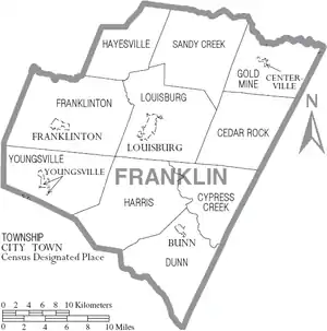 The county was formed in 1779 from the southern half of Bute County. It is named for Benjamin Franklin.[4] It is a part of the Research Triangle.