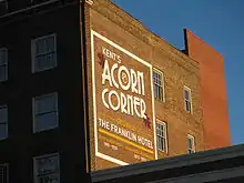Acorn Corner, originally known as the Franklin Hotel or Hotel Franklin, is a six-story historic building in Kent, Ohio, United States, listed on the National Register of Historic Places since January 2013. Construction started in 1919 and the hotel opened in September 1920. The hotel was also known as the Hotel Kent and later the Hotel Kent-Ellis. Locally it is often referred to as the "old Kent hotel", "Kent Hotel", or the "old hotel". The building functioned as a hotel until the early 1970s when it was converted for use as student housing. The upper four floors were condemned in 1979, though the bottom floors housed a number of small businesses until 2000.