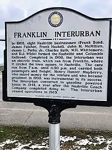 - 1 2 3 4 "The Interurban: Franklin's First Major Connection To Nashville". williamsonsource.com. Williamson Source/Franklin. February 12, 2016. Retrieved February 7, 2020.