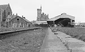 Fraserburgh railway station opened on 24 April 1865 and closed to passengers on 4 October 1965. It was known as Fraserburgh for Rosehearty and New Aberdour in Bradshaw until 1938.[2] The railway line was built by the Formartine and Buchan Railway Company, which became part of the Great North of Scotland Railway. In 1923 the GNSR was incorporated into the London and North Eastern Railway, which was in turn nationalised on 1 January 1948. Passenger services on the Buchan lines were withdrawn in 1965 as part of the Beeching cuts. Freight trains continued to operate Fraserburgh until 1979. The track was subsequently lifted. The closest operating station is currently Inverurie.