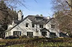 The Fred R. Hayward House is a historic house at 1547 Centre Street in Newton, Massachusetts. This large 2+12-story stucco-clad house was designed by Winchester architect Robert Coit, and built in 1912. Mostly rectangular in its massing with a hip roof, there are two forward-facing gables framing the main entry, the right one projecting slightly. The roof of the left side gable sweeps down to shelter a sunroom. Fred R. Hayward was later the president of the New England Confectionery Company, which had been created by his father in a sequence of mergers.[2]