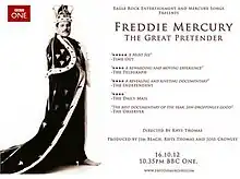 Freddie Mercury: The Great Pretender is an Emmy/Rose d'Or award-winning 2012 feature-length documentary film about Queen singer Freddie Mercury and his attempt to forge a solo career. The film is a British venture co-produced by EMP and Mercury Songs for Eagle Rock Entertainment with Eagle Rock serving as distributor.[1]