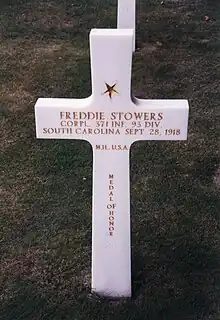 - ↑ "Freddie Stowers,Corporal, United States Army". Retrieved October 5, 2010.