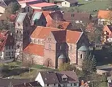 Fredelsloh is a village in Lower Saxony in Germany close to the town of Northeim. The town is historically agricultural, but today derives much income from its traditional pottery shops. The village is centred on a very large church, Klosterkirche Fredelsloh, which was formerly a mediaeval nunnery. The von Ohlen family historically owned much of the land in and around the village, and still has a strong presence in the area.