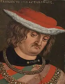 Frederick IV (French: Ferry) (15 April 1282 – 23 August 1328[1]), called the Fighter, was the Duke of Lorraine from 1312 to his death.
