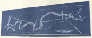 Although Gitt surveyed a route in 1867, the railroad solicited proposals for final engineering and route location in late 1868 and in October of that year, the Board received separate proposals from Gitt and Irwin as well as its future chief engineer John A. Haydon. The Board minutes show that Haydon's proposal was selected for its detail.[Minutes 1] In December of that year, the railroad purchased survey instruments from the firm of Frederick W. King (1821 - 1889) and Richard King (1823 - 1905) Baltimore, Maryland.[GL 1] Haydon commenced work on the railroad in May 1869 (Ibid.) with fellow civil engineer Calvin L Fulton (1837-1911) as his assistant.[23]