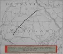 The Frederick and Pennsylvania Line railroad ran from Frederick, Maryland to the Pennsylvania-Maryland State line, or Mason–Dixon line near Kingsdale, Pennsylvania consisting of 28 miles (45.1 km) of center-line track and 29.93 miles (48.17 km) of total track including sidings. Chartered in 1867, the railroad started construction in 1869 and cost $868,687.50.