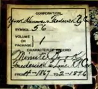 Label for Board of Directors' Minutes Book for the Frederick and Pennsylvania Line RR