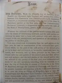 Full text copy of the Pennsylvania Railroad Lease of the Frederick and Pennsylvania Line RR from Director's minute book