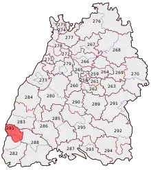 Freiburg is an electoral constituency (German: Wahlkreis) represented in the Bundestag. It elects one member via first-past-the-post voting. Under the current constituency numbering system, it is designated as constituency 281. It is located in southwestern Baden-Württemberg, comprising the city of Freiburg im Breisgau and northwestern parts of the district of Breisgau-Hochschwarzwald.[1]