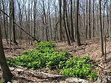 The second growth forests that stand today at French Creek State Park are made up of a mixture of oak, maple and other mostly hardwood trees. The land was reclaimed by the efforts of the young men of the Civilian Conservation Corps created during the Great Depression by President Franklin D. Roosevelt to offset unemployment. The CCC, invited to Pennsylvania by Governor Gifford Pinchot, worked to clear the forests and streams of brush. They also built many of the facilities still in use today at the park, including several tent camping areas, two small dams and lakes, two group camps, picnic areas, and extensive roads and trails throughout the park. They also began the restoration of the historic Hopewell Furnace.[6]