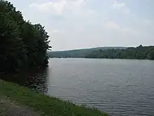 French Creek State Park is a 7,977-acre (3,228 ha) Pennsylvania state park in North Coventry and Warwick Townships in Chester County and Robeson and Union Townships in Berks County, Pennsylvania.[3] It straddles northern Chester County and southern Berks County along French Creek. It is located in the Hopewell Big Woods. The park is the home of two lakes: Hopewell Lake, a 68-acre (28 ha) warm water lake, and Scotts Run Lake, a 22-acre (8.9 ha) cold water lake. The state record smallmouth bass was caught in Scotts Run Lake. There are extensive forests, and almost 40 miles (64 km) of hiking and equestrian trails. The park is also friendly to mountain bikers, having some renowned technical trails. Hopewell Furnace National Historic Site, which features a cold blast furnace restored to its 1830s appearance, is surrounded by the park. The Six Penny Day Use Area and Group Camp are listed on the National Register of Historic Places. French Creek State Park is located off of Pennsylvania Route 345 to the south of Birdsboro.
