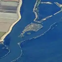 ![]() USGS aerial imagery of French Island; Hastings Tract is across Cache Slough to the west, and the flooded Liberty Island is across Shag Slough to the east. | |