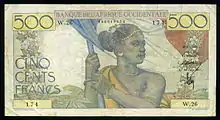 The franc was the currency of French West Africa. The French franc circulated, together with distinct banknotes from 1903 and coins from 1944. It was replaced by the CFA franc in 1945.