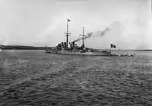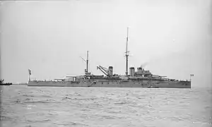 Courbet was the lead ship of her class of four dreadnought battleships, the first ones built for the French Navy. She was completed shortly before the start of World War I in August 1914. She spent the war in the Mediterranean, where she helped to sink an Austro-Hungarian cruiser, covered the Otranto Barrage that blockaded the Austro-Hungarian Navy in the Adriatic Sea, and often served as a flagship. Although upgraded several times before World War II, she was not considered to be a first-line battleship by the 1930s and spent much of that decade as a gunnery training ship.
