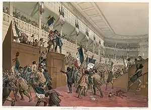 The French demonstration of 15 May 1848 was an event played out, mostly, in the streets of Paris. It was intended to reverse the results of a Second Republic election of deputies to the Constituent Assembly. It is difficult to say, with any precision, whether this phenomenon should be called a demonstration, a riot, an invasion, a rebellion, or an attempted coup d'état. Nonetheless, it seems to have been largely unplanned, not particularly bloody, and indisputably a failure.