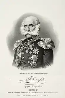 Friedrich Benjamin Graf[1] von Lütke (Russian: Фёдор Петро́вич Ли́тке, Fyodor Petrovich Litke; 28 September [O.S. 17 September] 179720 August [O.S. 8 August] 1882), more commonly known by his Russian name Fyodor Litke, was a Russian navigator, geographer, and Arctic explorer. He became a count in 1866, and an admiral in 1855. He was a corresponding member (1829), Honorable Member (1855), and President (1864) of the Russian Academy of Science in St. Petersburg. He was also an Honorable Member of many other Russian and foreign scientific establishments, and a corresponding member of the French Academy of Science in Paris.