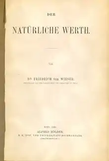 - Wieser, Friedrich (1889). Der natürliche Werth (in German). Wien: A. Hölder. Retrieved 17 August 2018.