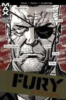 Fury: My War Gone By, also known as Fury MAX or Fury MAX: Cold Warrior is a 2012-2013 thirteen issue comic book limited series written by Garth Ennis and published by Marvel Comics. The series follow the character of Nick Fury during his military career under the course of the 20th century after the Second World War, when Fury participated in most of the United States' Cold War initiatives around the globe. Like most of Ennis's previous works on characters that are mainly figures in the world of superheroes so does the series do away with those elements, it instead fixate on the real life dealings of soldiers and spies in historical situations. It is a sequel to the 2001 series Fury and the 2006 series Fury: Peacemaker, both also written by Garth Ennis. The comic was drawn by Goran Parlov who had previously worked with Ennis on his Punisher series. The series garnered decent sales and critical acclaim.