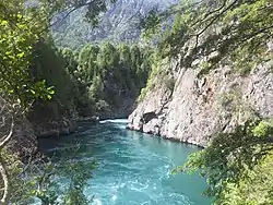 During its course through Chile, the Futaleufú River has three major tributaries, the Rio Chico, the Rio Espolon, and the Rio Azul. All three major tributaries of the "Futa" can be rafted or kayaked in season, with the exception of a gorge on the Espolon called "The Devil's Throat".[1] The Futaleufú watershed also includes several lakes including Lago Espolon, Lago Lonconao, and Lago Pinilla.[2]