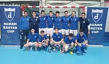 Dinamo started the Cup competition in 1/8 finals of the Regional Cup. The first match was an away game against the first league squad Novi Marof. Dinamo won 7:2, and during that game, GNK Dinamo's legend, Tomislav Šokota, scored a hat-trick. In ¼ finals, Dinamo defeated Kozakiv (3:1), and in semi-finals Rugvica with 8:2. On that game Šokota scored another hat-trick.[23] In the regional cup finals Dinamo played against the previous year Croatian champion, Alumnus. In completely filled Dražen Petrović Arena, Dinamo won a dramatic match after turning the result in the last two minutes of the match. With that victory, Dinamo clinched its first trophy in history, and secured qualification to the National Cup.[24] In 1/8 finals of National Cup, Dinamo lost against reigning Croatian champion and reigning winner of Croatian Cup, Nacional.[25]