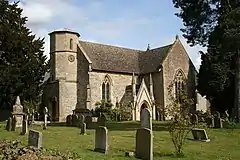 The Church of England parish church of St. Nicholas was originally a late 12th[5] or early 13th[4] century Norman building. It has a canonical sundial on the south wall. In the 14th century it was largely rebuilt with the addition of a north aisle and a south transept.[4] The north arcade was rebuilt in the 15th century[4] and the south porch was added in the 19th century,[7] possibly designed by J.C. Buckler and built in 1867–68.[7]