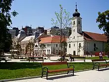 As a part of the New Hungary Development Plan, the town's main square has been completely renovated, with work completed in 2011, in an attempt to restore the atmosphere of the town to that of the time prior to the Socialist Party's building programme, which demolished much of the town centre to make way for blocks of flats. As part of the renovation, the square has been pedestrianised, 46 Secession era-style street lights added, and a singing fountain built in front of the Reformed Church.