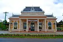 Gödöllő in the area around the royal palace hosted the 4th World Scout Jamboree during 2–13 August 1933 at the Royal Forest of Gödöllő. A total of 25,792 scouts from 54 nations camped on the site. The Jamboree Camp Chief was the Chief Scout of Hungary, Count Teleki Pál, a member of the International Committee who had previously been and would later once again become Prime Minister of Hungary. The General Camp Manager was Vitez Kisbarnaki Ferenc Farkas, a general staff officer of the Hungarian Royal Army, who was later appointed the Chief Scout of Hungary on Teleki Pál's death in 1941.[3] The scouts lived in ten sub-camps. The overall encampment was serviced by its own post office, ambulance station, hospital, a steam railway and station, an electric local tram line with four stations,[4] radio service, 14 km (9 mi) water supply with 9 wells, and an air-service.[5]